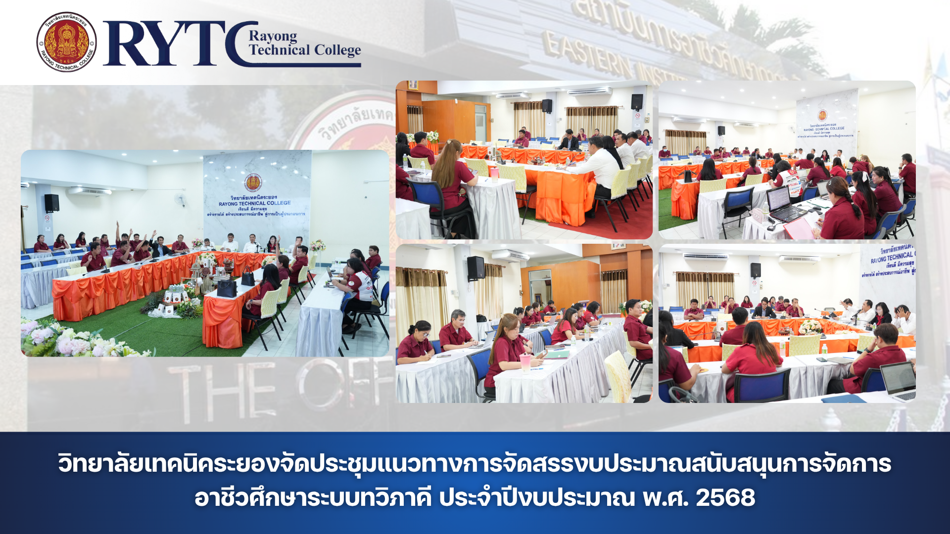 วิทยาลัยเทคนิคระยองจัดประชุมแนวทางการจัดสรรงบประมาณสนับสนุนการจัดการอาชีวศึกษาระบบทวิภาคี ประจำปีงบประมาณ พ.ศ. 2568