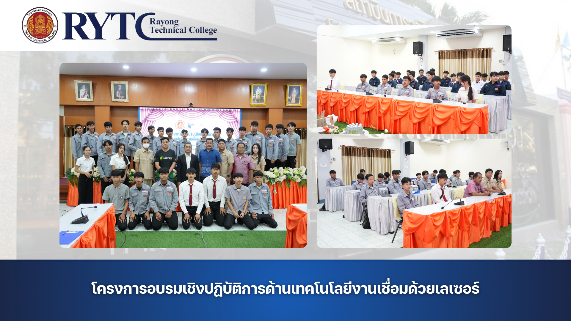 โครงการอบรมเชิงปฏิบัติการด้านเทคโนโลยีงานเชื่อมด้วยเลเซอร์ ณ วิทยาลัยเทคนิคระยอง โดยมี ดร.ชรินทร์ ชูชื่น รองผู้อำนวยการ รักษาราชการแทนผู้อำนวยการวิทยาลัยเทคนิคระยอง เป็นประธานในพิธีเปิด และ นายปรีชา จำลองรัก เป็นผู้กล่าวรายงาน