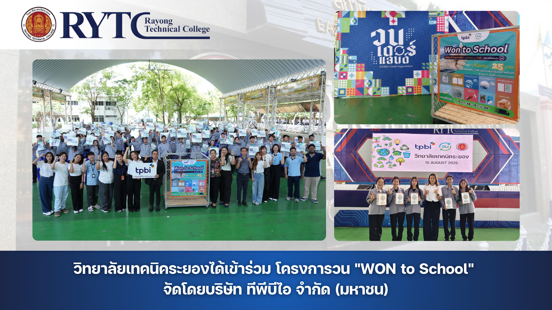 วิทยาลัยเทคนิคระยองได้เข้าร่วม โครงการวน "WON to School" จัดโดยบริษัท ทีพีบีไอ จำกัด (มหาชน)