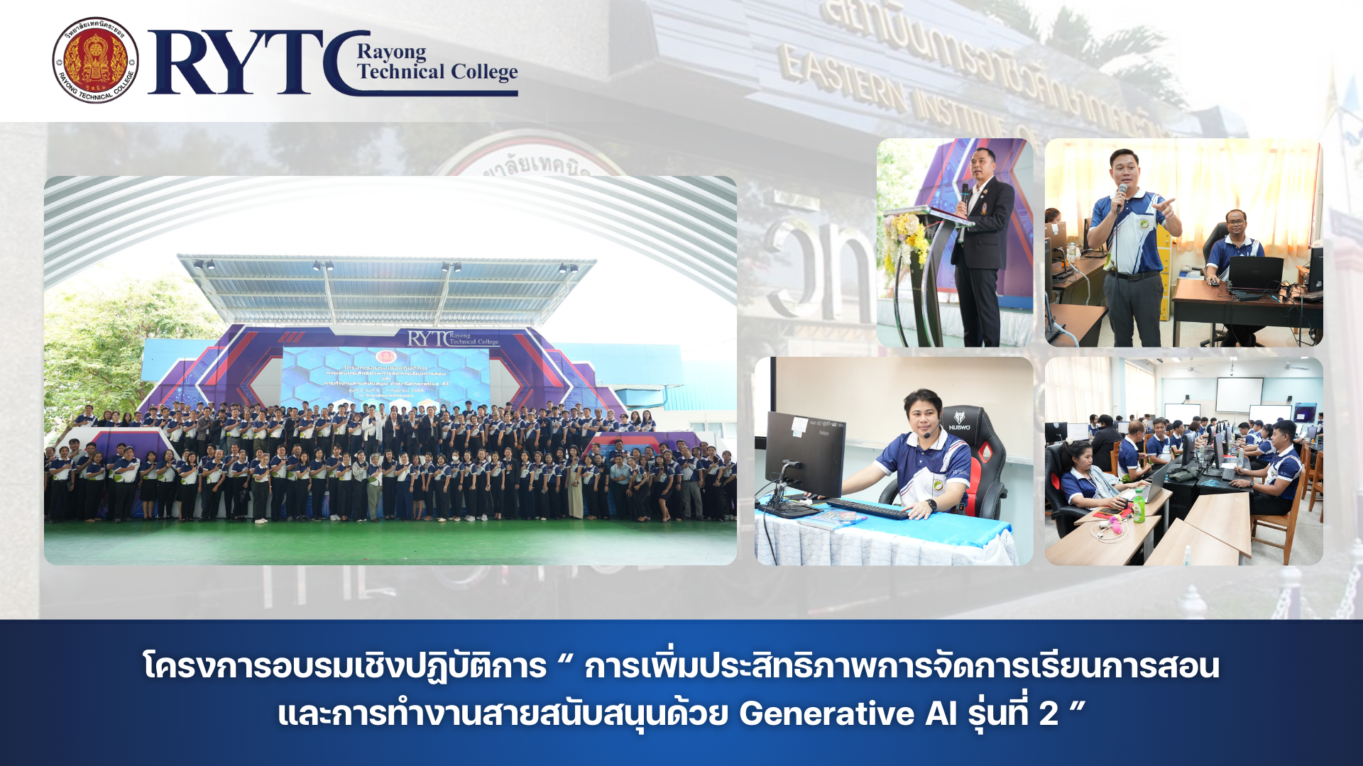 วิทยาลัยเทคนิคระยอง นำโดย นายกิตติพงค์ อุตตมะเวทิน ผู้อำนวยการวิทยาลัยเทคนิคระยอง เป็นประธานในพิธีเปิดโครงการอบรมเชิงปฏิบัติการ “ การเพิ่มประสิทธิภาพการจัดการเรียนการสอน และการทำงานสายสนับสนุนด้วย Generative AI รุ่นที่ 2 ” ประจำปีงบประมาณ 2568 โดยมี ดร.ชรินทร์ ชูชื่น รองผู้อำนวยการวิทยาลัยเทคนิคระยอง กล่าวรายงาน