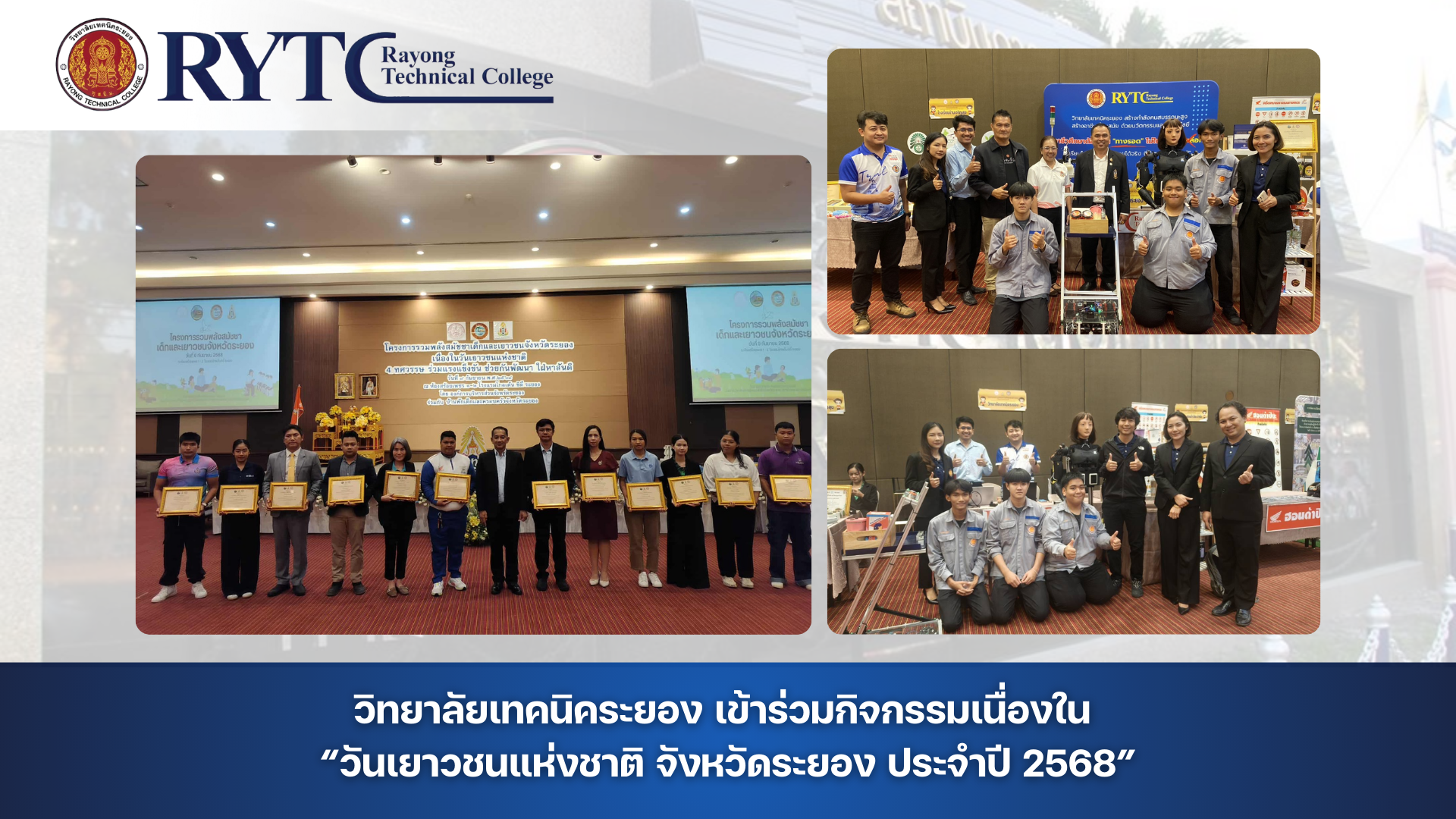 วิทยาลัยเทคนิคระยอง เข้าร่วมกิจกรรมเนื่องใน “วันเยาวชนแห่งชาติ จังหวัดระยอง ประจำปี 2568”