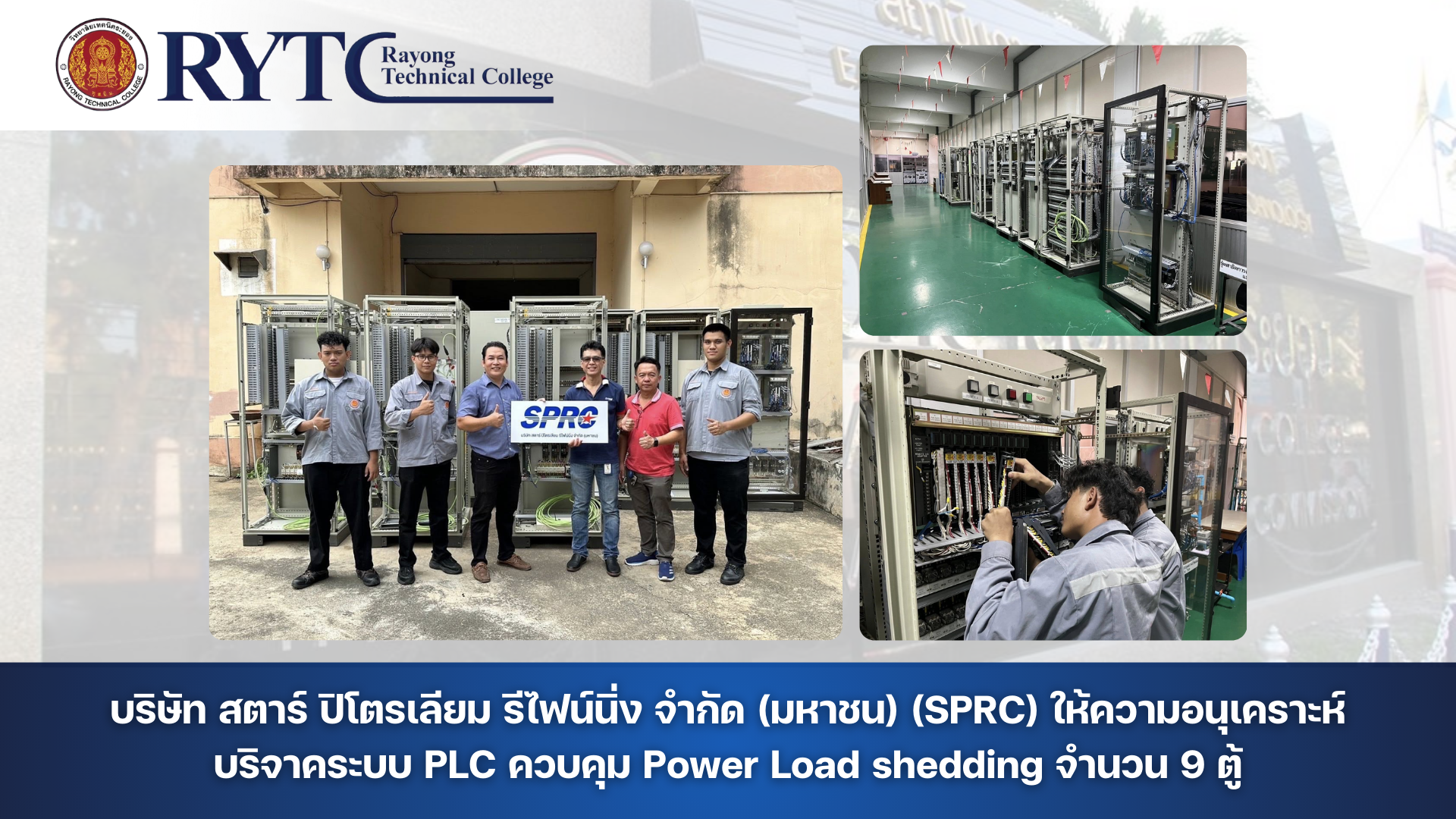 วันพฤหัสบดีที่ 25 กันยายน 2568 บริษัท สตาร์ ปิโตรเลียม รีไฟน์นิ่ง จำกัด (มหาชน) (SPRC) ให้ความอนุเคราะห์บริจาคระบบ PLC ควบคุม Power Load shedding จำนวน 9 ตู้ เพื่อนำมาใช้ในการจัดการเรียนการสอนของนักศึกษาแผนกวิชาเครื่องมือวัดและควบคุม ซึ่งจะช่วยเพิ่มทักษะ (Upskill) การผลิตและพัฒนากำลังรองรับอุตสาหกรรมเป้าหมายในรูปแบบ EEC Model Type A ให้มีทักษะด้านวิชาชีพรองรับความต้องการกำลังคนในอุตสาหกรรมเขตพัฒนาพิเศษภาคตะวันออก (EEC)