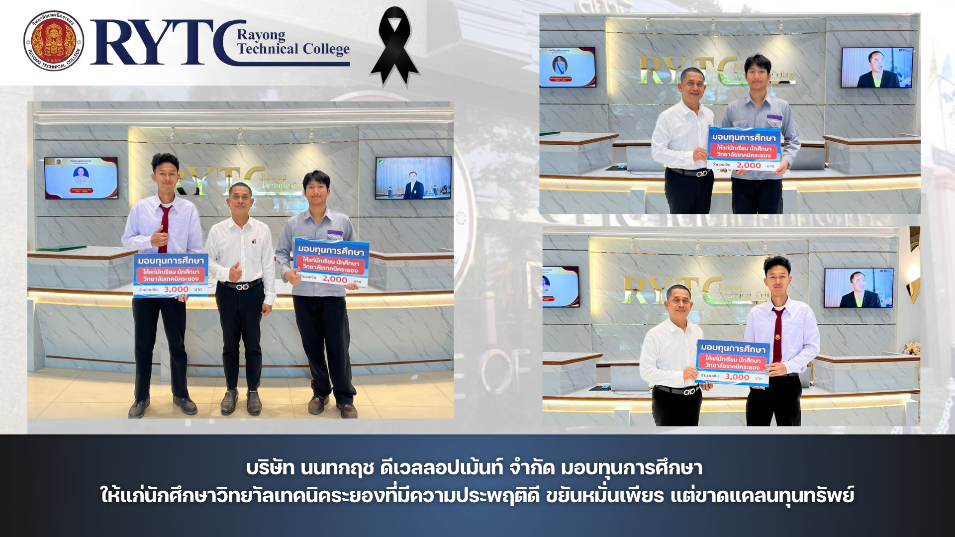 บริษัท นนทกฤช ดีเวลลอปเม้นท์ จำกัด มอบทุนการศึกษา ให้แก่นักศึกษาวิทยาลัยเทคนิคระยองที่มีความประพฤติดี ขยันหมั่นเพียร แต่ขาดแคลนทุนทรัพย์