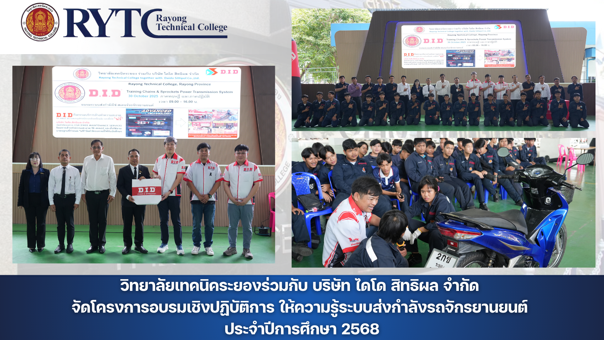 โดยมี ดร.ชรินทร์ ชูชื่น รองผู้อำนวยการวิทยาลัยเทคนิคระยอง เป็นผู้แทนมอบทุนการศึกษาให้แก่นักศึกษา