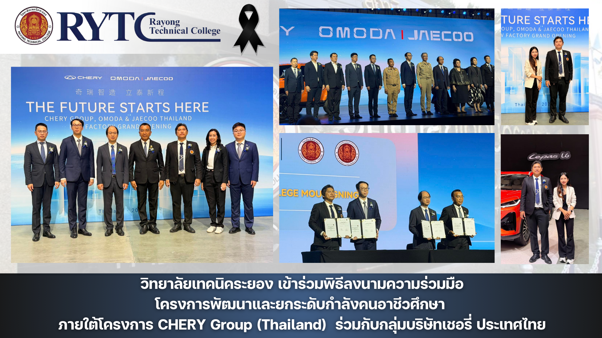 วิทยาลัยเทคนิคระยอง เข้าร่วมพิธีลงนามความร่วมมือ โครงการพัฒนาและยกระดับกำลังคนอาชีวศึกษา ภายใต้โครงการ CHERY Group (Thailand) ร่วมกับกลุ่มบริษัทเชอรี่ ประเทศไทย