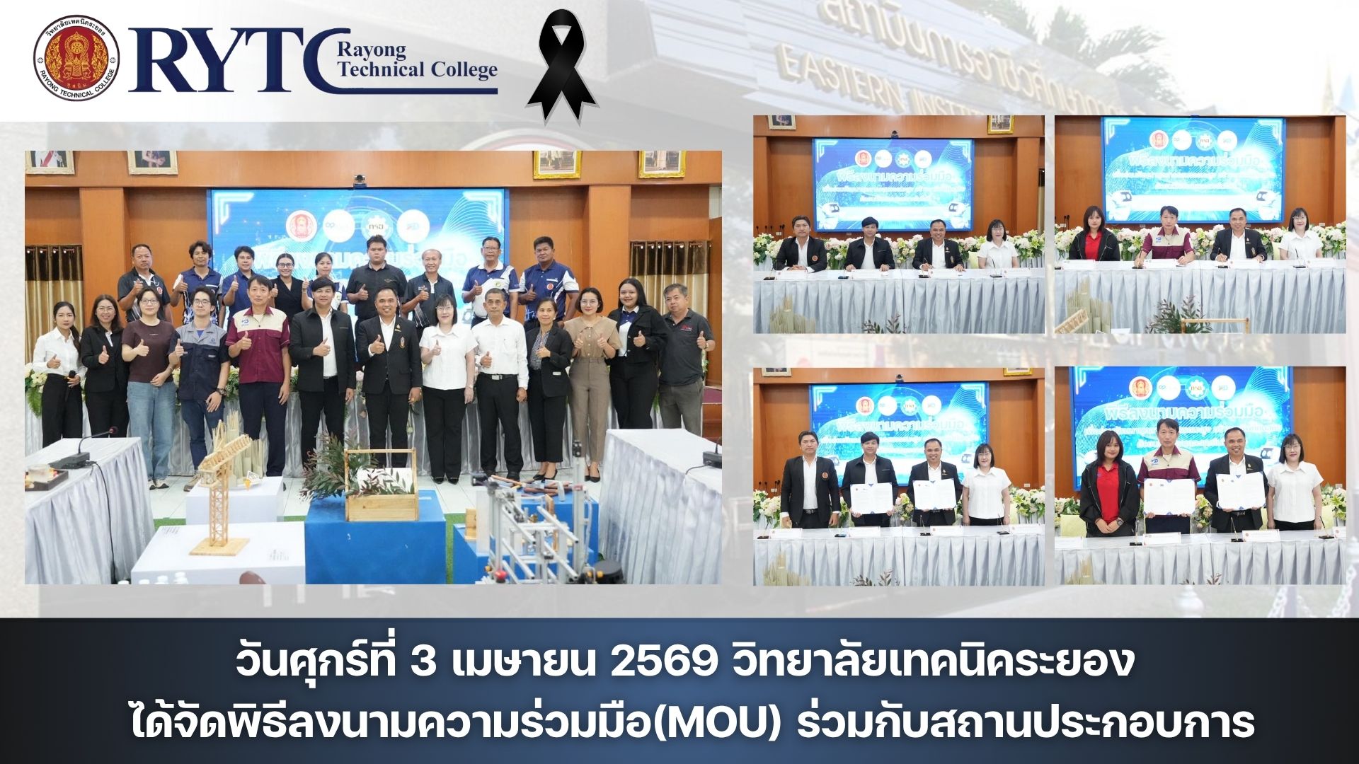 โดยในวันจันทร์ที่ 20 เมษายน 2569 ณ บริษัท Omoda & Jaecoo Manufacturing (Thailand) จังหวัดระยอง โดย นายกิตติพงค์ อุตตมะเวทิน ผู้อำนวยการวิทยาลัยเทคนิคระยอง มอบหมายให้ นายชาคริต รุ่งรัตน์ รองผู้อำนวยการฝ่ายวิชาการ เป็นผู้แทนเข้าร่วมพิธีลงนามความร่วมมือในครั้งนี้