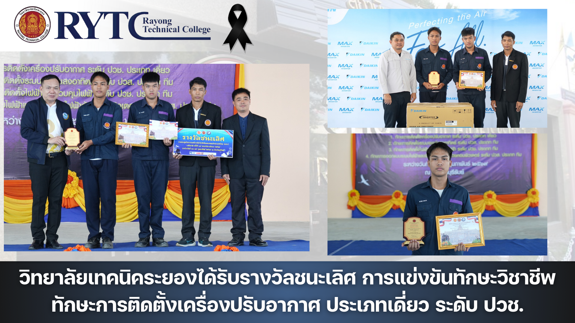 วิทยาลัยเทคนิคระยองได้รับรางวัลชนะเลิศ การแข่งขันทักษะวิชาชีพ ทักษะการติดตั้งเครื่องปรับอากาศ ประเภทเดี่ยว ระดับ ปวช.