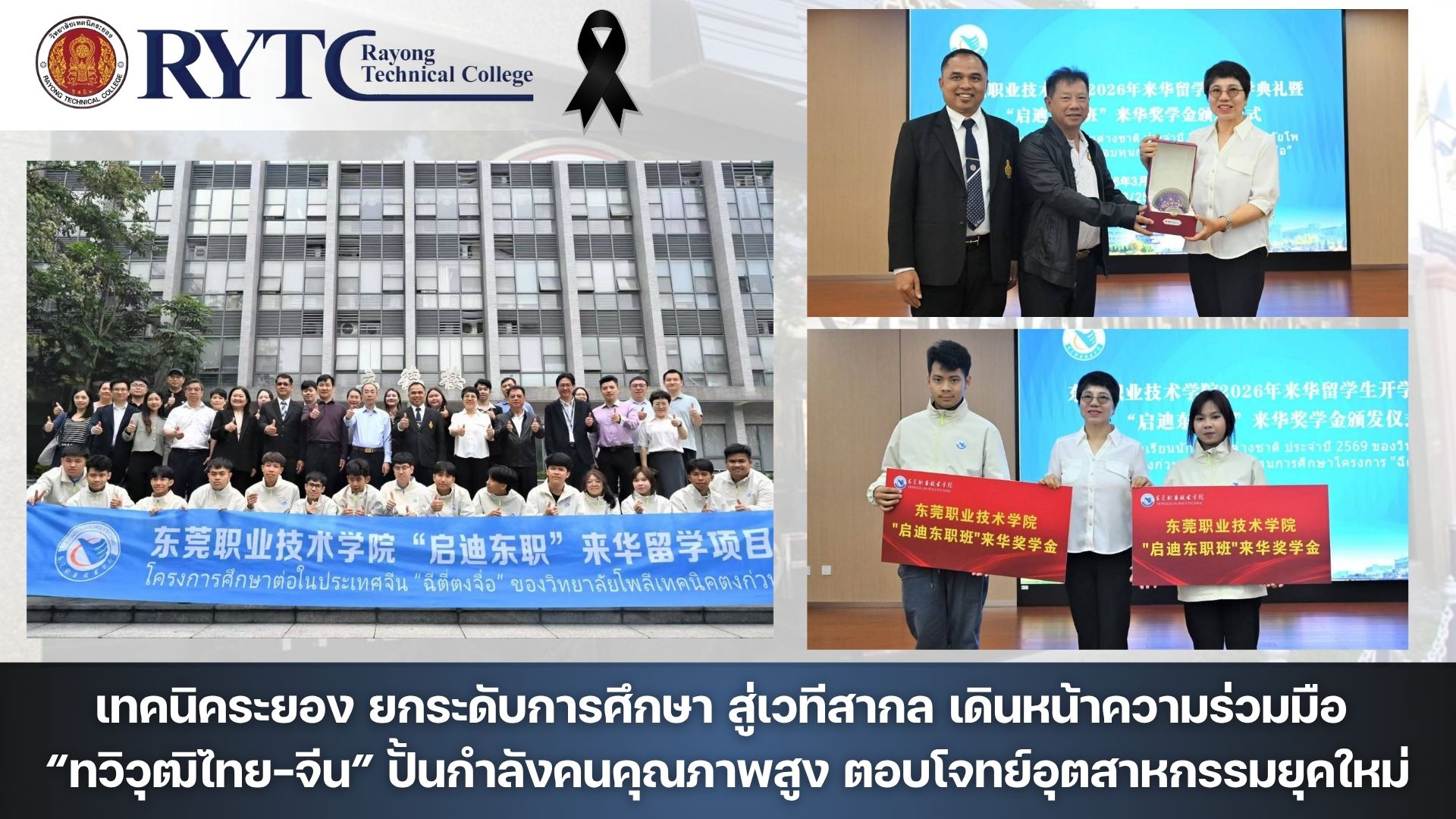 เมื่อวันที่ 23-26 มี.ค.69 ที่ผ่านมา นายกิตติพงค์ อุตตมะเวทิน ผู้อำนวยการวิทยาลัยเทคนิคระยอง พร้อมด้วยคณะครู วิทยาลัยเทคนิคระยอง ตอกย้ำบทบาทการเป็นผู้นำด้านอาชีวศึกษาสมัยใหม่ เดินหน้าขยายความร่วมมือระดับนานาชาติอย่างต่อเนื่องผ่าน “โครงการทวิวุฒิไทย–จีน (Thai–Chinese Dual Diploma Program)” มุ่งพัฒนาผู้เรียนให้เป็นกำลังคนคุณภาพสูง ที่มีทั้งทักษะวิชาชีพควบคู่กับทักษะภาษาจีน พร้อมก้าวสู่ตลาดแรงงานระดับสากล